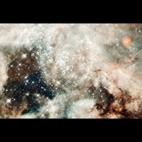 30 Doradus is the brightest, nearby star-forming region and home to the most massive stars in our cosmic neighborhood of about 25 galaxies. The nebula is close enough to Earth that Hubble can resolve individual stars, giving astronomers important information about the stars' birth and evolution. 30 Doradus resides 170,000 light-years away in the Large Magellanic Cloud, a small, satellite galaxy of our Milky Way.